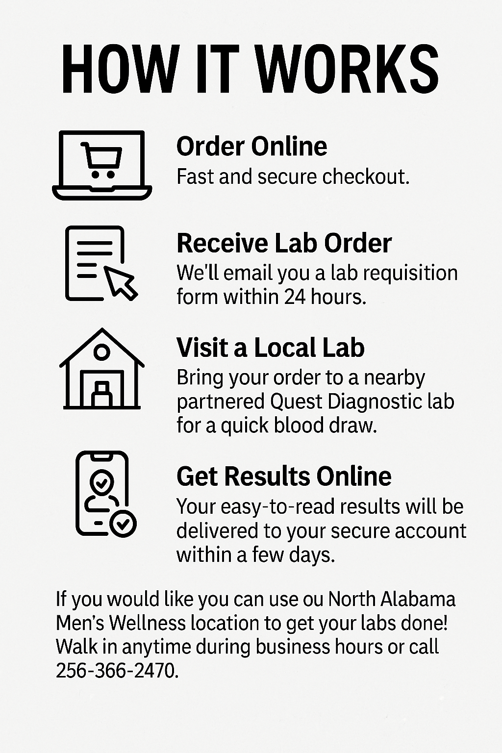 If you would like you can use our North Alabama Men's Wellness location to get your labs done! Walk in anytime during business hours or call 256-366-2470
